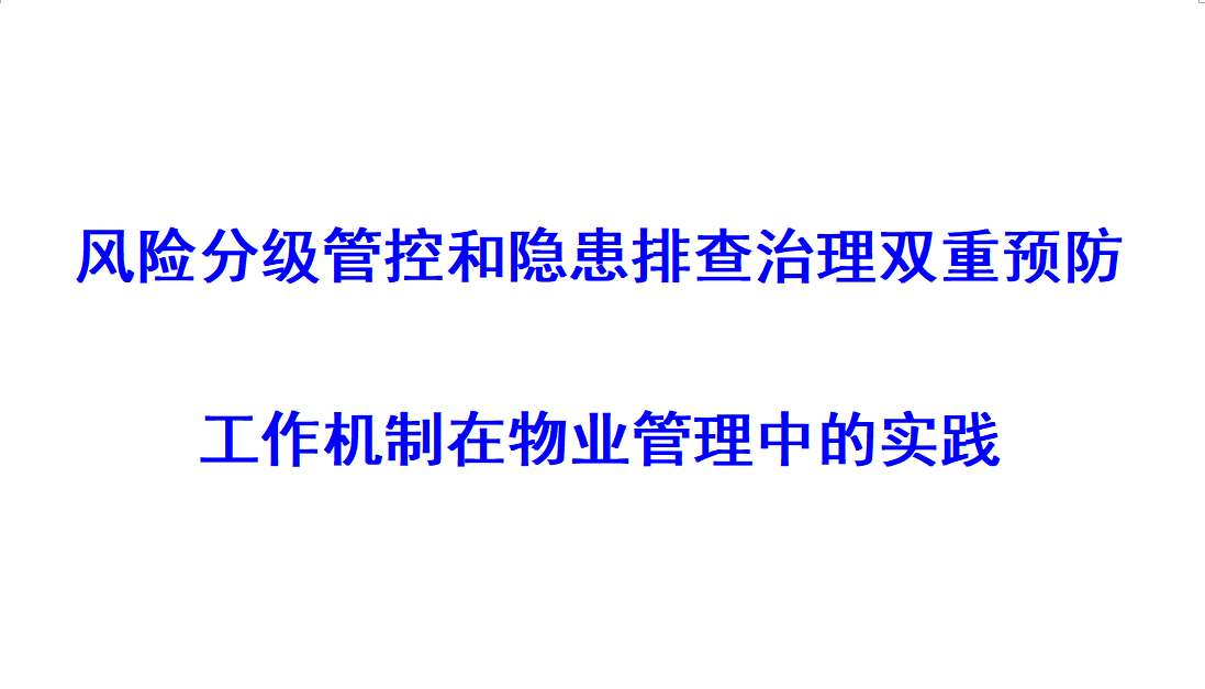 • 風(fēng)險分級管控和隱患排查治理雙重預(yù)防工作機(jī)制在物業(yè)管理中的實踐 [2021-01-22]
